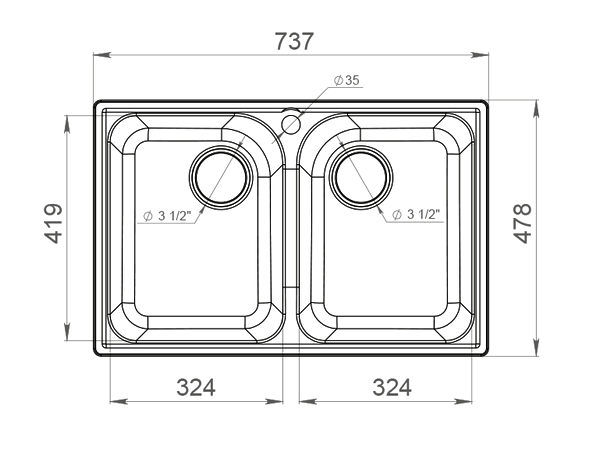 * Диаметр слива: 3,5"