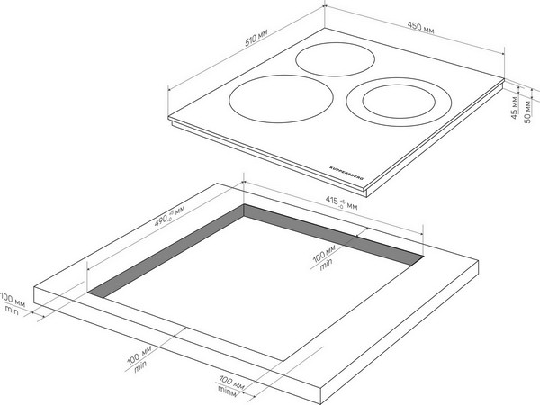 ● Мощность конфорок, средняя: 1,0 кВт/2,0 кВт