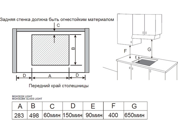 ● Размеры зоны встраивания: 283х498 мм