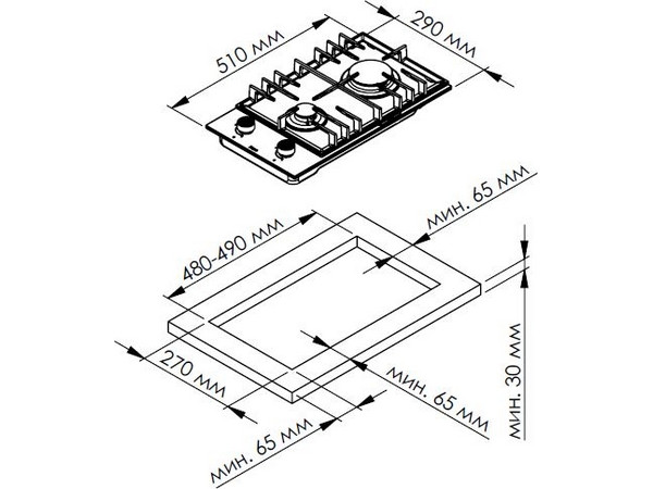 ● Размеры ниши для встраивания (ШхГ): 270х490 мм