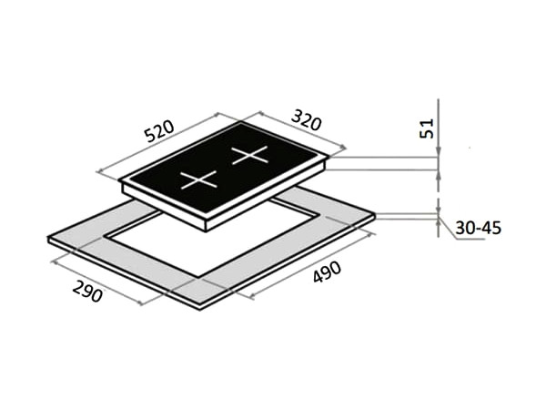 ● Диаметр конфорок: 1 средняя, 1 WOK