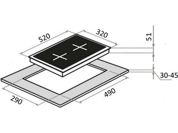 ● Мощность конфорок: 1700 Вт, 2600 Вт