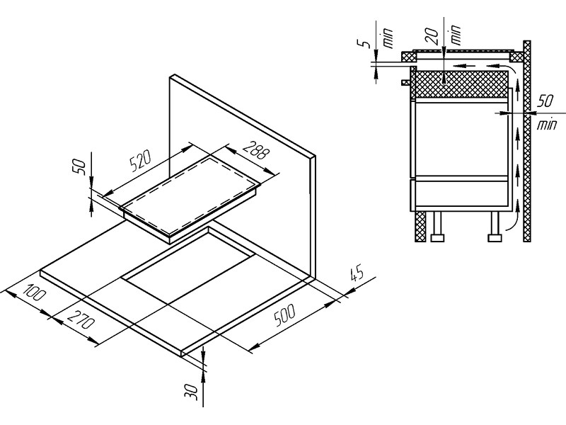 ● Размер ниши для встраивания (ШхГ): 270х500 мм