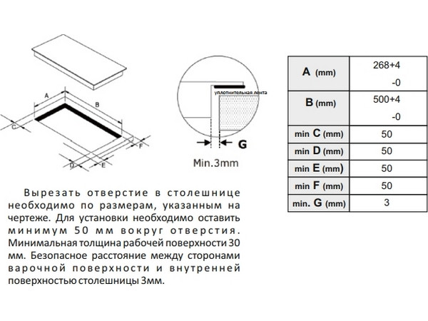 ● Монтажные размеры (ШхГ): 268х500 мм