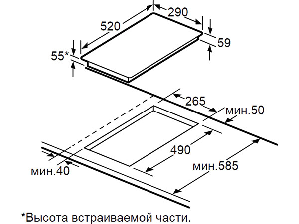 ● Глубина: 520 мм