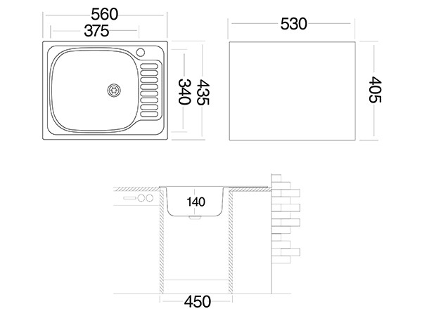 * Размеры мойки: 560х435 мм