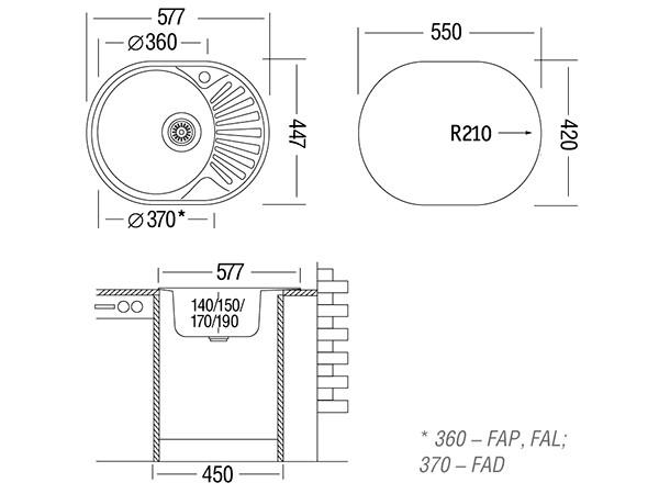 * Размер мойки: 577х447 мм