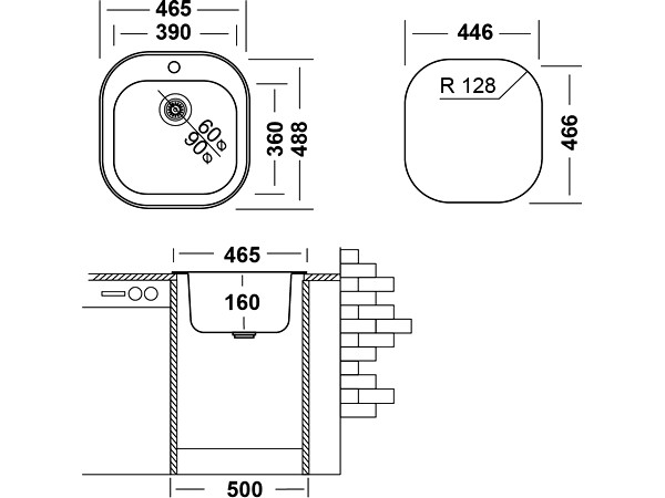 * Размер мойки: 465х488 мм