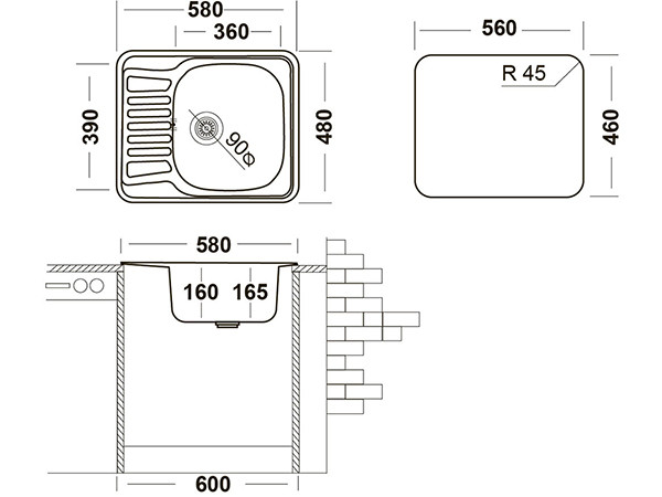 Мойка Ukinox Комфорт COM580.480 -GT6K 1R