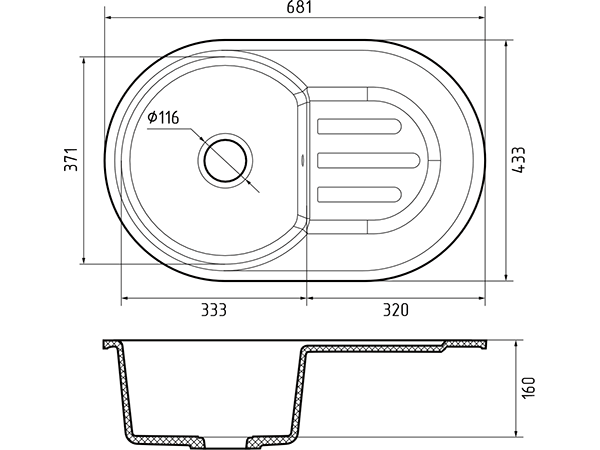 * Размер мойки: 681х433 мм