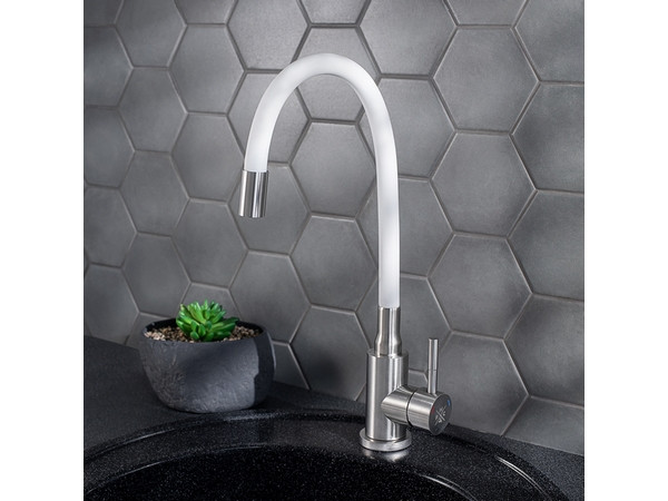 Смеситель Handmade SUS124W-016F, белый/нерж.сталь